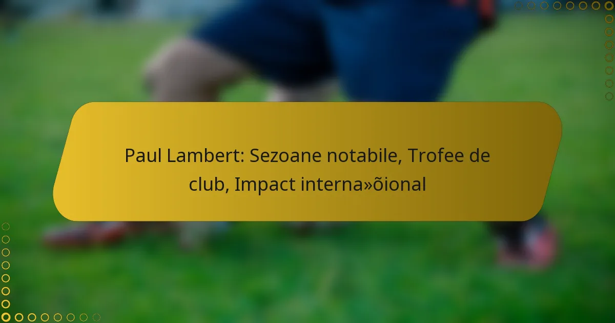 Paul Lambert este o figură distinsă în fotbal, celebrată pentru sezoanele sale remarcabile și pentru conducerea sa în cadrul diferitelor cluburi, inclusiv Celtic și Borussia Dortmund. Cabinetul său impresionant de trofee include multiple titluri, cum ar fi Scottish Premier League și UEFA Champions League, subliniind impactul său atât ca jucător, cât și ca antrenor. În plus, contribuțiile lui Lambert la fotbalul scoțian se extind dincolo de realizările la nivel de club, influențând dezvoltarea tineretului și lăsând o moștenire durabilă în competițiile internaționale.